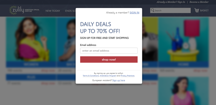 It's not just a jacket. The only way to purchase certain items is to become a member (usually a paid privilege). Zulily is a clothing store that requires registration before you can even see deals.