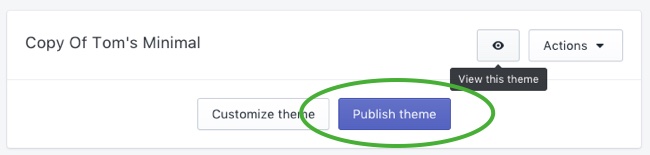 To make your duplicate theme live you will need to click the Publish button from within your Shopify theme admin, as shown here: