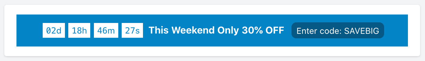 You can add a countdown timer to any Flair banner to add some urgency and boost your sales.