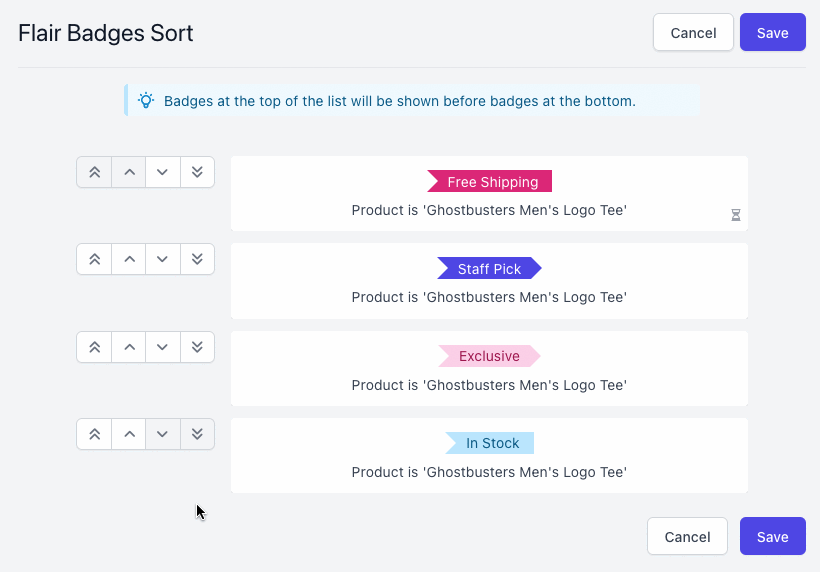 The new sort interface was designed to work better with Flair customers that have a larger number of Flair badges and banners.