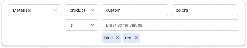 You can show a Flair badge or banner based on these colors, for example, to show a promotion for red and blue colored products: